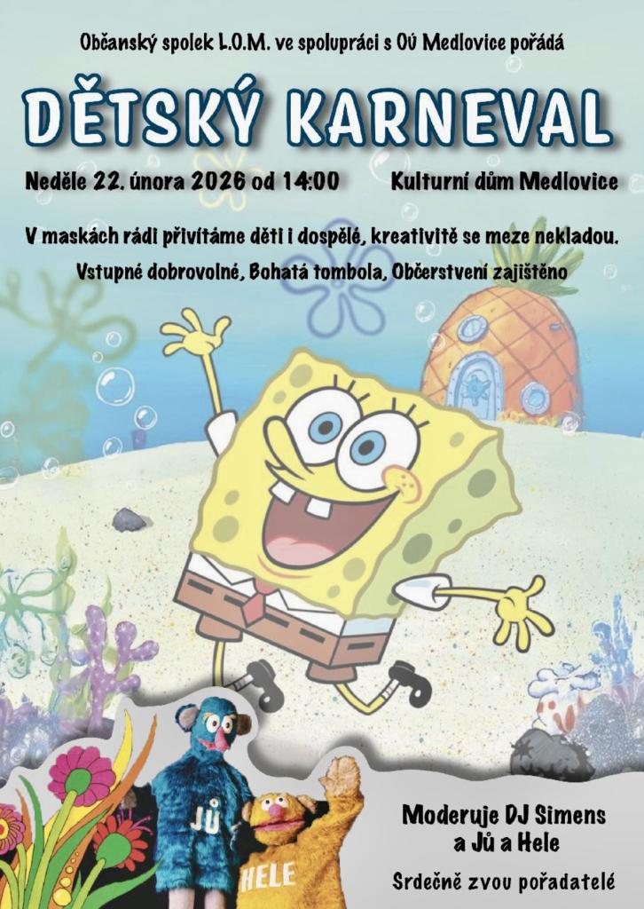 V neděli 22. února od 14:00 na KD Medlovice.